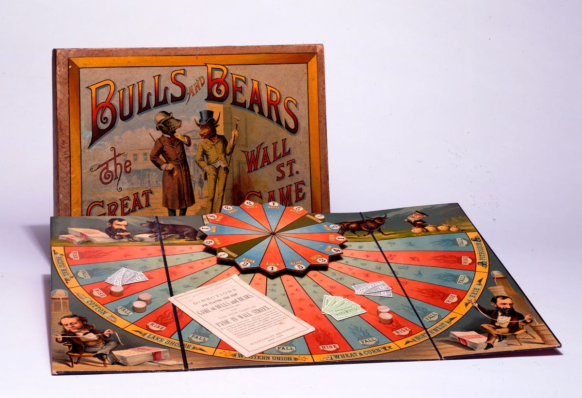 Just for fun, if one of your Victorian-era ancestors was interested in both the stock market and board games, they may have purchased a copy of Bulls and Bears - The Great Wall Street Game, patented in 1883.