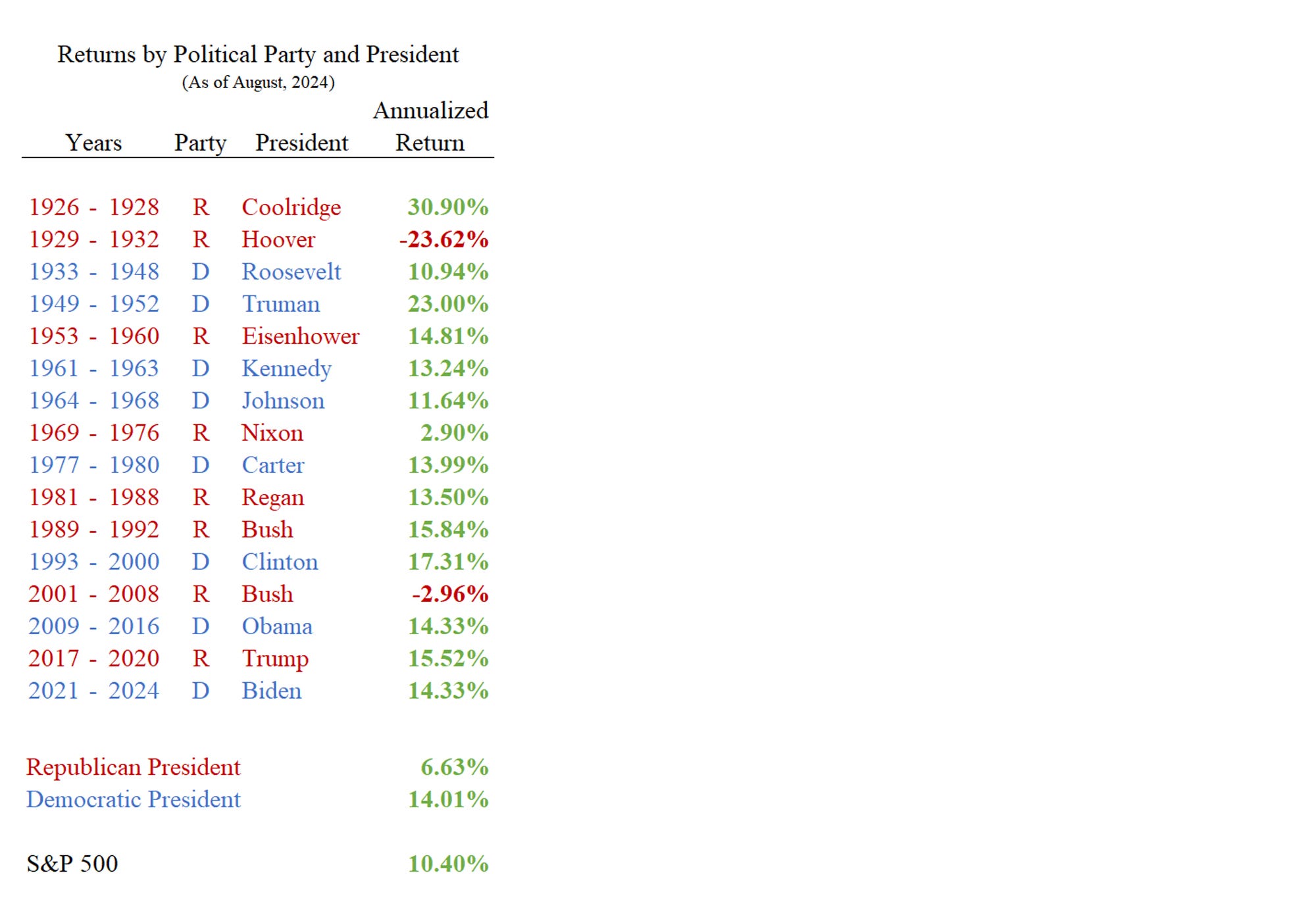 Stock Market Returns by President.