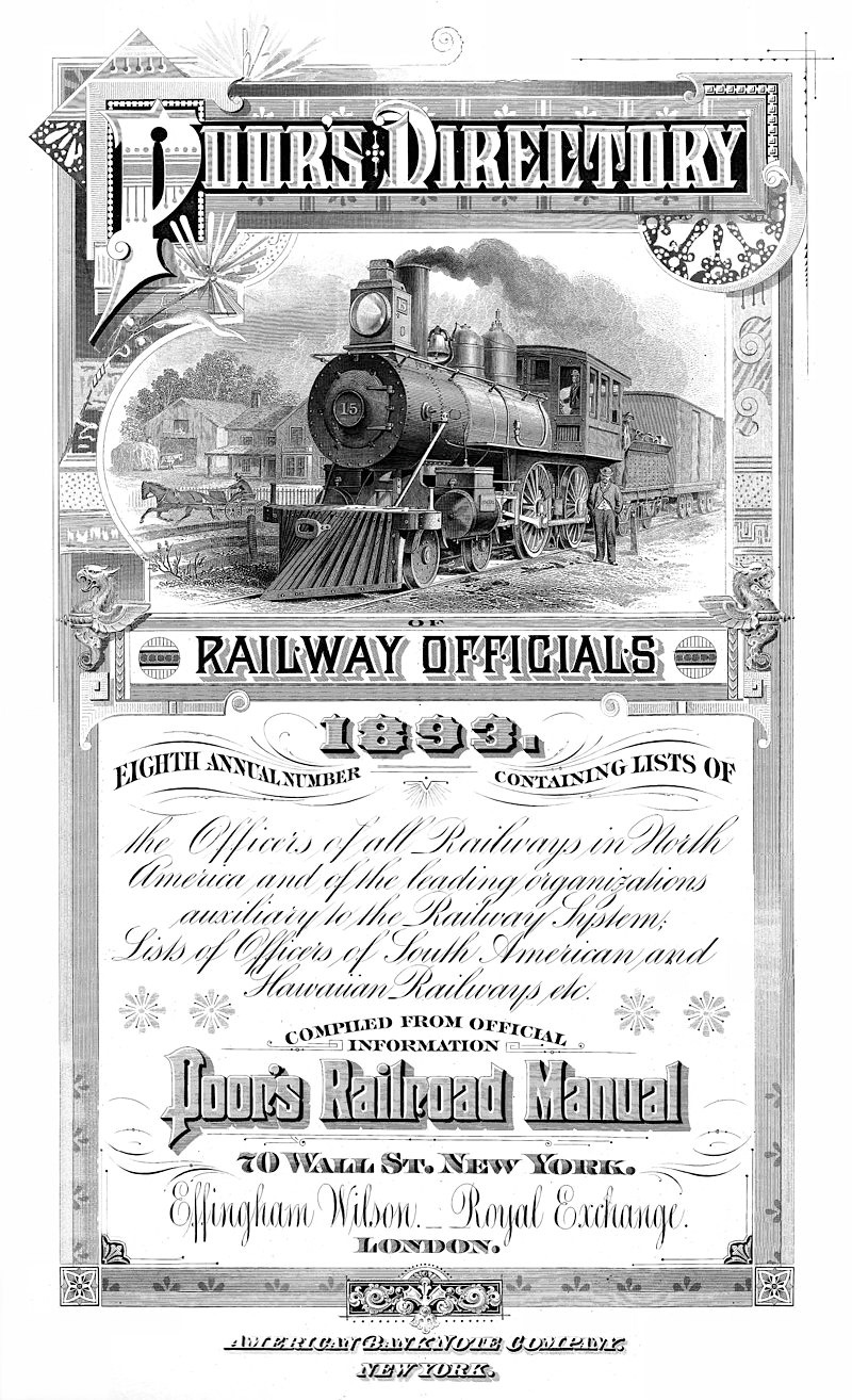 In 1860, Henry Poor published History of Railroads and Canals in the United States, containing financial information about U.S. railroad companies, and began publishing an annual edition of Poor’s Railroad Manual (which had cool pictures of trains on the cover).
